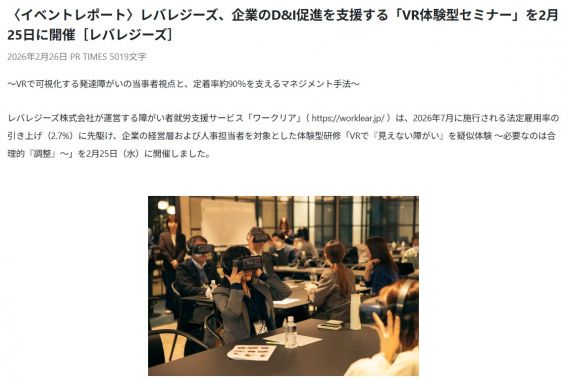 2026年2月26日の日経新聞や東京新聞にて、レバレジーズ株式会社が企業の経営層および人事担当者を対象にした研修にて、シルバーウッドのVR発達障害を活用していただいた様子を取り上げていただきました。